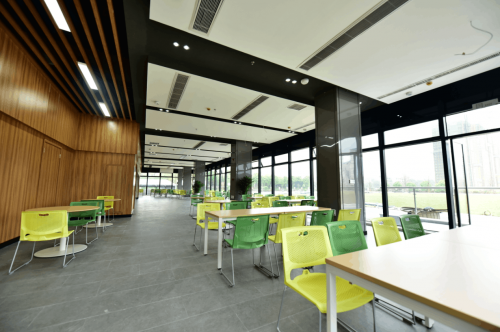 三層樓之間通過電梯送餐,高效而又便捷。當(dāng)孩子們享用著營(yíng)養(yǎng)均衡、搭配合理的餐點(diǎn),還能從落地窗眺望不遠(yuǎn)處老師同學(xué)運(yùn)動(dòng)的場(chǎng)景,當(dāng)比賽到達(dá)高潮,或許還能夠情不自禁地站起來,為自己所在學(xué)院的隊(duì)伍加油鼓勁。