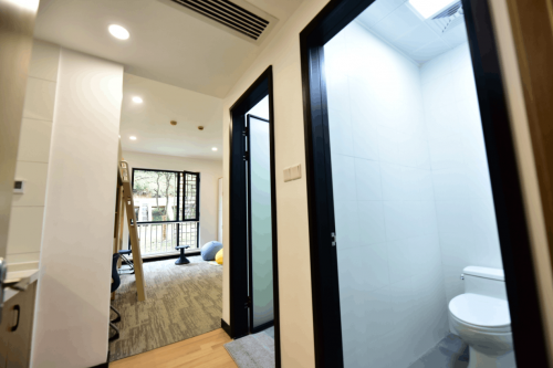 11幢沿湖而建的宿舍單元樓,與不遠(yuǎn)處的表演藝術(shù)中心遙遙相望。走進(jìn)其內(nèi)部,溫馨而實(shí)用的布置,仿佛將我們一下拉回了那個(gè)令人回味的學(xué)生時(shí)代。