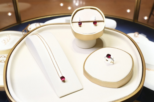 開幕儀式期間,曾舜晞化身愛之使者,為Pomellato寶曼蘭朵親自臻選神秘禮物。開云集團(tuán)大中華區(qū)總裁蔡金青女士為大家揭開神秘禮物的面紗——珍寶盒。當(dāng)珍寶盒掀起,兩邊彩帶齊放, Pomellato寶曼蘭朵廣州精品店如珍貴寶藏般被初次開啟,亦宣告精品店暨限時品牌展正式揭幕。珍寶盒內(nèi)藏有Pomellato 寶曼蘭朵經(jīng)典Nudo系列紅碧璽珠寶,碧璽因色彩斑斕而被譽(yù)為墜入人間的彩虹,紅碧璽則由于其稀有而罕見成為碧璽中的翹楚。此款Nudo所鑲嵌的珍稀紅碧璽通透清亮、純凈度非常高,精妙絕倫的色澤仿佛火一般的愛情炙熱純粹。華美寶藏灼灼盡顯,鮮艷奪目的紅色寶石詮釋著5·20浪漫告白季的炙熱愛語。全新Nudo系列戒指綴以大顆珍稀紅碧璽寶石,打造指間魅力華彩,擁有漫不經(jīng)心的優(yōu)雅;精致Nudo系列耳環(huán)于側(cè)顏輕盈搖曳,搭配Nudo系列項(xiàng)鏈,靈動搖擺間相映成趣,演繹完美且耀目的優(yōu)雅格調(diào)。至臻匠心令一件件作品呈現(xiàn)迷人美感,是5·20告白季表達(dá)愛意的絕佳之選。