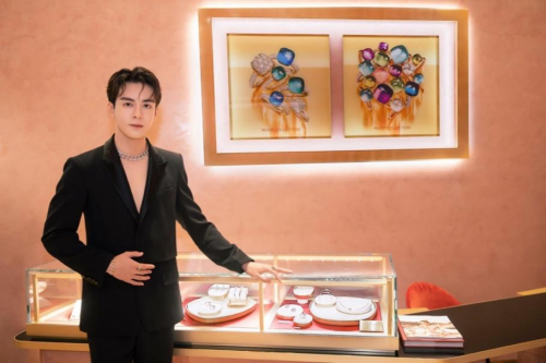 青年演員曾舜晞先生于精品店內(nèi)參觀Pomellato寶曼蘭朵珠寶作品