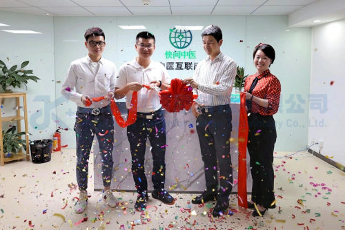 快問中醫(yī)互聯(lián)網(wǎng)醫(yī)院實體醫(yī)療機(jī)構(gòu)剪彩現(xiàn)場(左二為源康健創(chuàng)始人萬耀華)