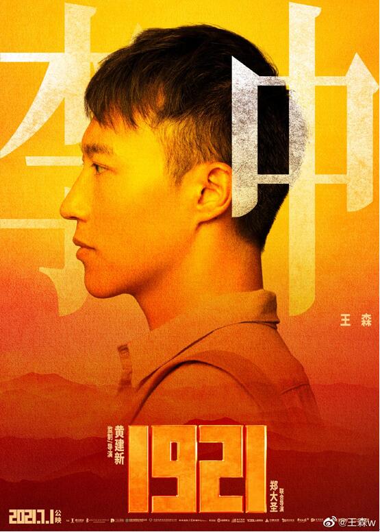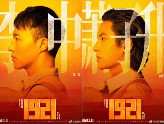 趙薇工作室青年演員王森、張哲瀚曬出電影《1921》的側顏照