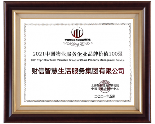 品牌價(jià)值凸顯!財(cái)信智慧服務(wù)榮膺2021中國物業(yè)服務(wù)企業(yè)品牌價(jià)值100強(qiáng)