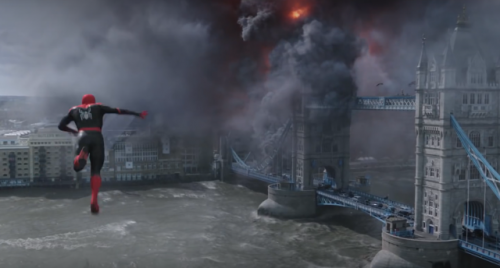而在《蜘蛛俠·英雄遠征》中,最核心的技術秀無疑也是全息投影。片中的反派神秘客將全息投影搭載在無人機上,利用無人機的機動性,快速地改變攝像頭的角度,實現多場景、多視角的變幻效果。蜘蛛俠就在這全息幻境中與神秘客貝克展開對決,光怪陸離,魔幻而奇異,算是影片的一大亮點。
