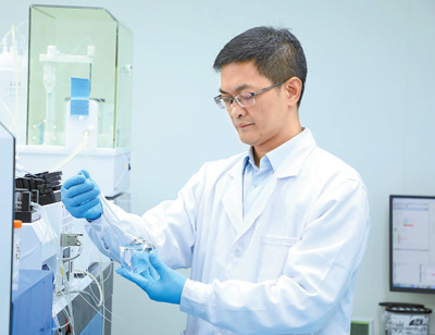 溫宗國(guó)在實(shí)驗(yàn)室分析污染物組成和來(lái)源。