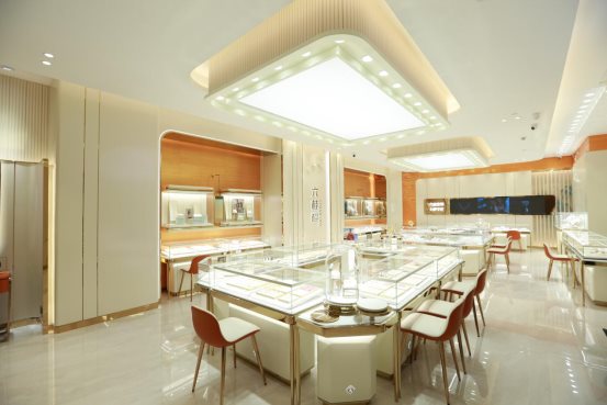 伴隨新品牌標(biāo)志的啟動(dòng),此次活動(dòng)上,六桂福也同步推出了第5代全新終端形象。整體采用新東方主義的設(shè)計(jì)風(fēng)格,將中國(guó)傳統(tǒng)文化元素與現(xiàn)代設(shè)計(jì)相結(jié)合,從每一處細(xì)節(jié)出發(fā),打造高品質(zhì)品牌形象,體現(xiàn)東方文化珠寶的品牌定位,給予顧客典雅、時(shí)尚、溫馨的視覺體驗(yàn)。