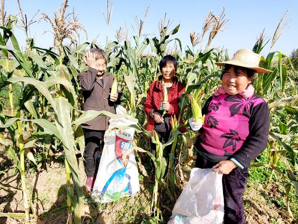 11月2日,廣袤的田野里,有些麥苗甚至已露出地面一寸多,但在河南省魯山縣張店鄉(xiāng)袁家溝村的一處大田地里,該村的貧困戶宋金霞、張新花一些貧困戶仍在收獲鮮玉米。掰開一個玉米穗,露出的是嫩嫩的、黑色或紅色的玉米籽。
