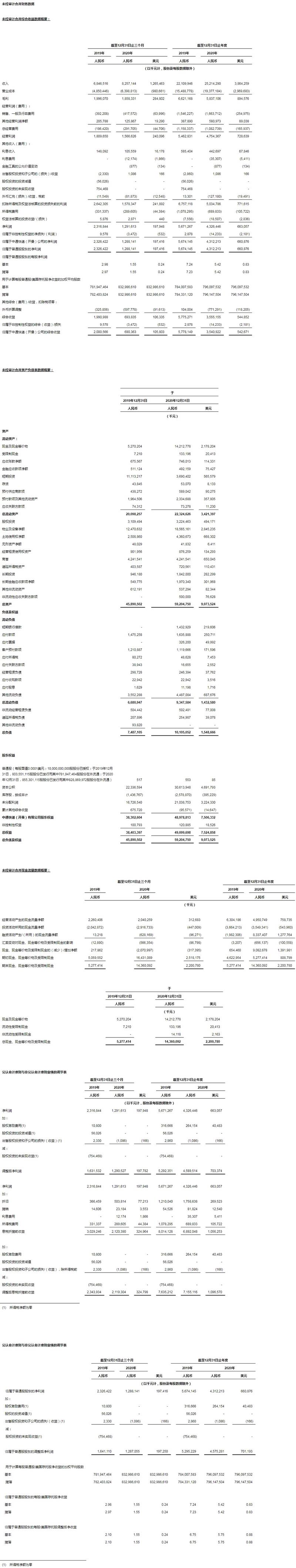 歸屬于普通股股東的調(diào)整后基本及攤薄每股美國(guó)存托股收益[5]為人民幣5.75元(0.88美元),較2019年的人民幣6.75元下降14.8%。