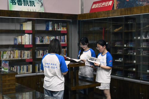 圖為團(tuán)隊(duì)成員在瀏覽館閱讀紅色書(shū)籍