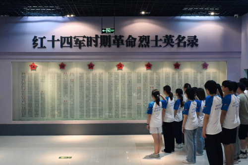 圖為團(tuán)隊(duì)成員在紅十四軍時(shí)期革命烈士英名錄前宣誓