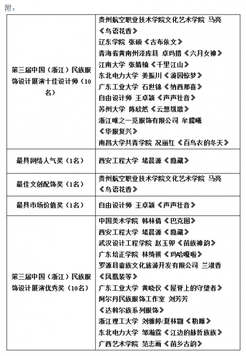 據(jù)了解,自1月份活動(dòng)啟動(dòng)以來,共收到來自浙江、廣東、江西、江蘇、黑龍江、青海、貴州等10多個(gè)省份的693份參賽作品,涵蓋中國美術(shù)學(xué)院、中央民族大學(xué)、四川美術(shù)學(xué)院、浙江理工大學(xué)、江南大學(xué)等百余所專業(yè)服裝設(shè)計(jì)院校的設(shè)計(jì)作品,以及60多名職業(yè)設(shè)計(jì)師、民族服飾匠人及院校教師的積極參與。