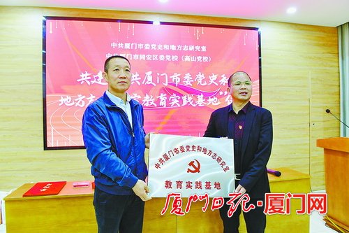 ▲市委黨史和地方志研究室與同安區(qū)委黨校共建教育實(shí)踐基地合作協(xié)議簽署及授牌儀式舉行。