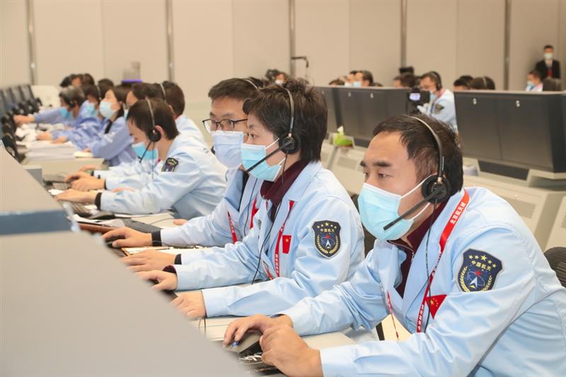 11月29日,航天科技人員在北京飛行控制中心工作。新華社發(fā)(北京航天飛行控制中心供圖)
