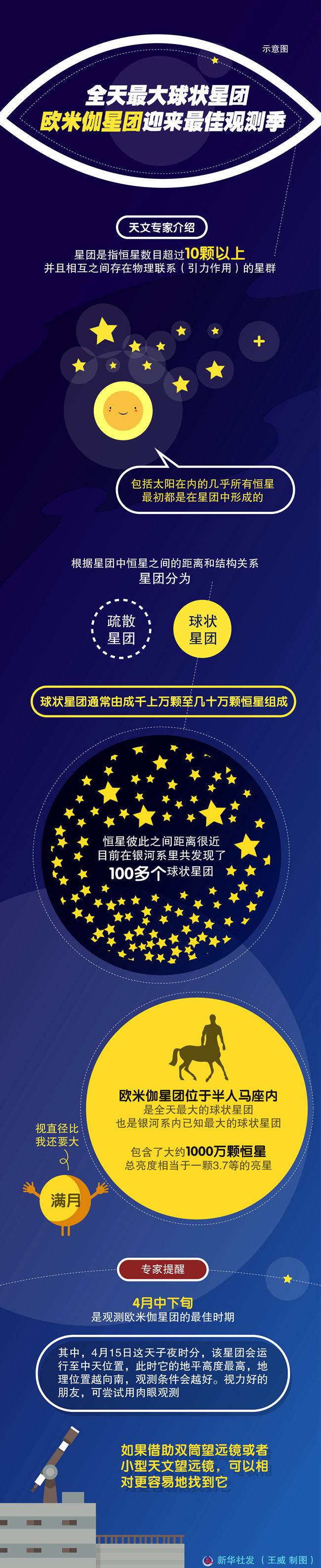 “由于歐米伽星團(tuán)的位置比較靠南,更適合我國南方的愛好者觀測,而北方部分地區(qū),每年能看到它的時間很短?!壁w之珩說。