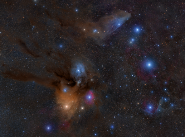 ↑北京市天文愛好者王辰2021年6月12日至6月19日租用智利天文臺(tái)的設(shè)備拍攝的天蝎座(多張疊加),不僅有多顆著名恒星,還包含了星空調(diào)色盤、藍(lán)馬頭星云以及眾多肉眼很難觀測(cè)到的暗星云。(本人供圖)