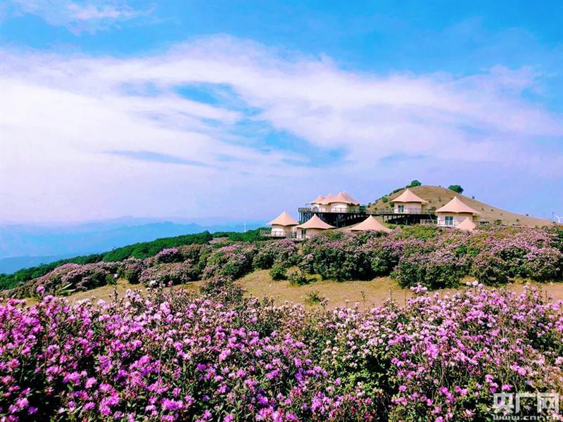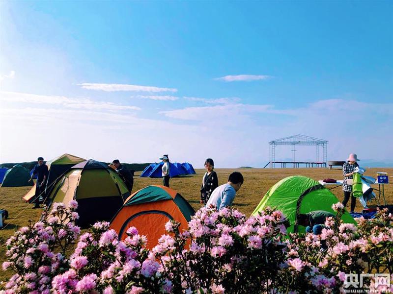 ?。ㄓ浾呃钔?通訊員彭偉)近日,貴州烏蒙大草原的萬畝杜鵑花盡情綻放,迎來最佳觀賞期,吸引各地游客前來觀光游玩。