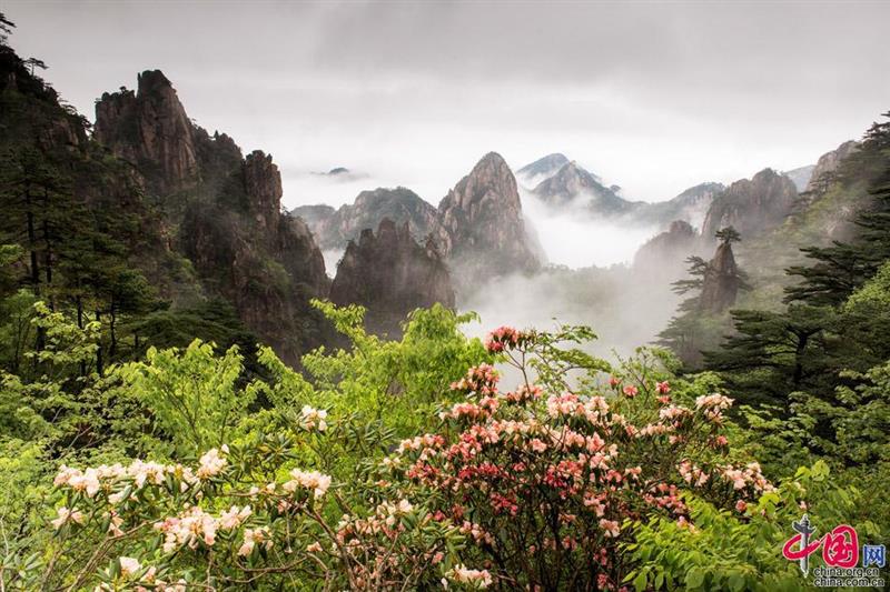 由于黃山山上氣溫較低,當(dāng)山下春色褪盡,花開(kāi)凋零,五月初的黃山之巔才有初春的景象,樹(shù)掛新綠,空氣中彌漫著嫩綠和花兒的芳香;最絢麗的高山杜鵑花競(jìng)相開(kāi)放,峭壁上,深坳里,路旁邊,把黃山裝點(diǎn)得分外妖嬈,是這個(gè)季節(jié)最大的亮點(diǎn),黃山的植物物種最具有多樣性的景區(qū),還有許多有名或無(wú)名的花在各自特定的時(shí)段綻放。