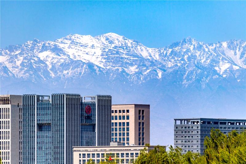 人民網(wǎng)銀川4月28日電 (閻夢婕)在經(jīng)歷了一天的沙塵、大風(fēng)天氣后,寧夏新十景之一“賀蘭晴雪”又一次出現(xiàn)。藍(lán)天下,賀蘭山山頂?shù)陌}皚積雪與銀川市內(nèi)的碧水春光相映成趣,美色宜人。