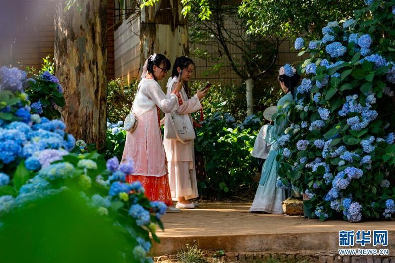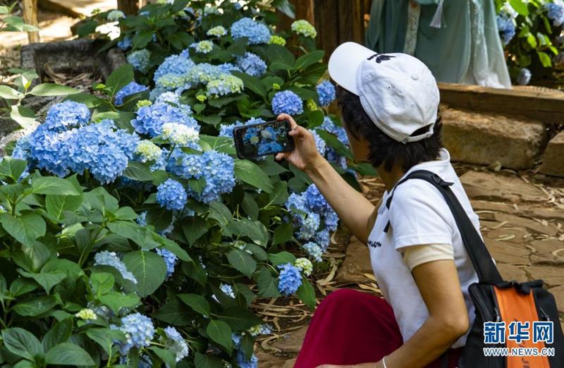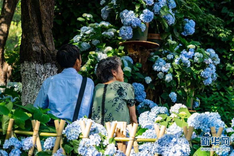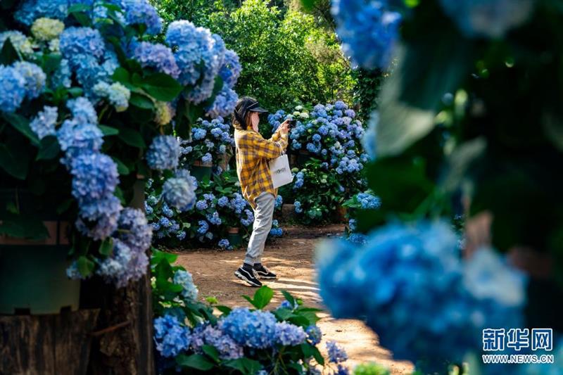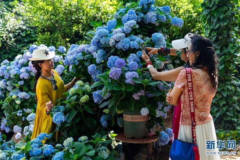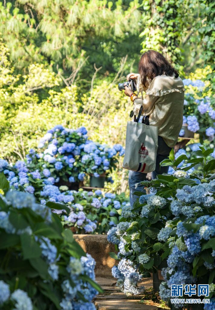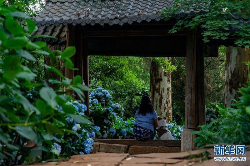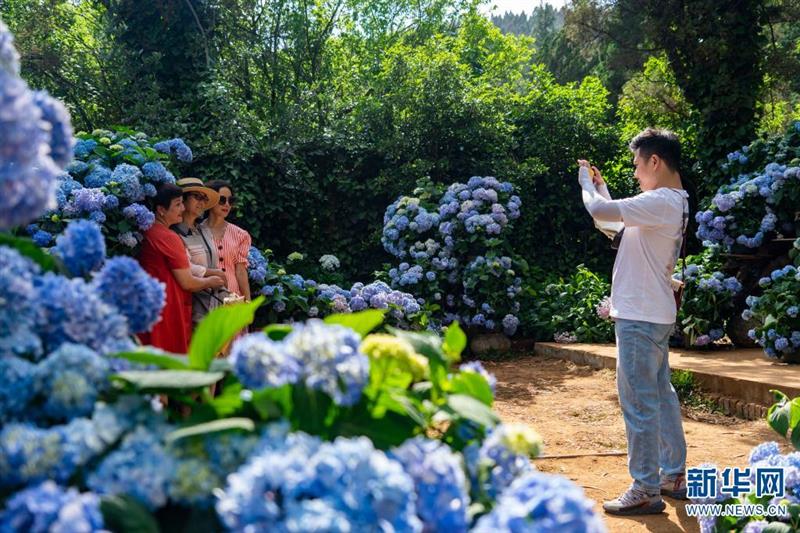 坐落于昆明市北郊玉案山的郊野公園,是昆明人一年四季常去的賞花之地。初夏時節(jié),山林之間的郊野公園,成了繡球花的主場,吸引眾多游客紛至沓來。新華網(wǎng)發(fā)(劉東 鄭益攝影報道)