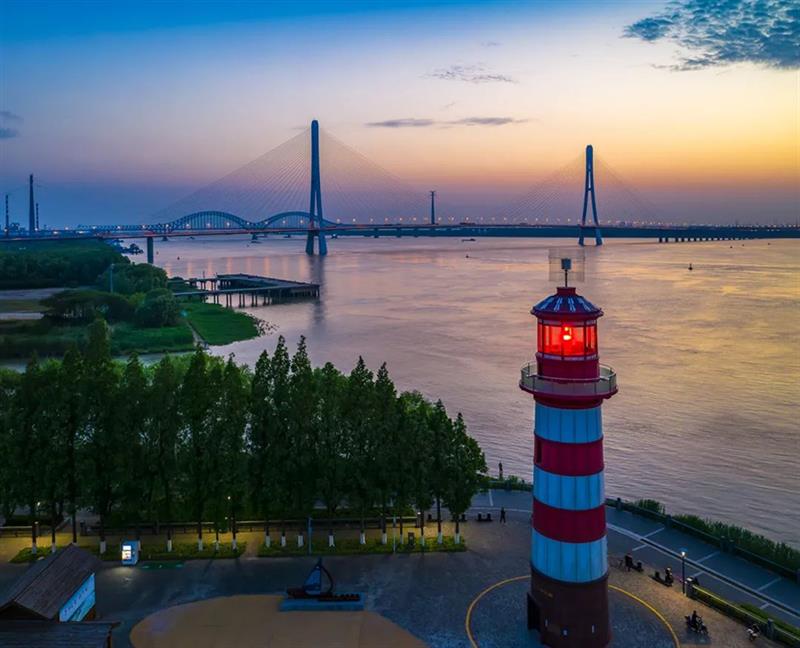 除了網(wǎng)紅燈塔,這里還能看到長江三橋。靜靜的趴在欄桿上,看太陽的余暉灑滿天際,再看它慢慢落下,是一件特別幸福的事。(李曉村 攝)