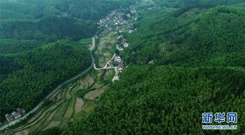 5月31日,從空中鳥瞰安徽省合肥市廬江縣龍橋鎮(zhèn)凌安村,萬畝竹海綠意蔥蘢,村路、農(nóng)田、民居裝點其間,一幅綠色圖景盡收眼底。
