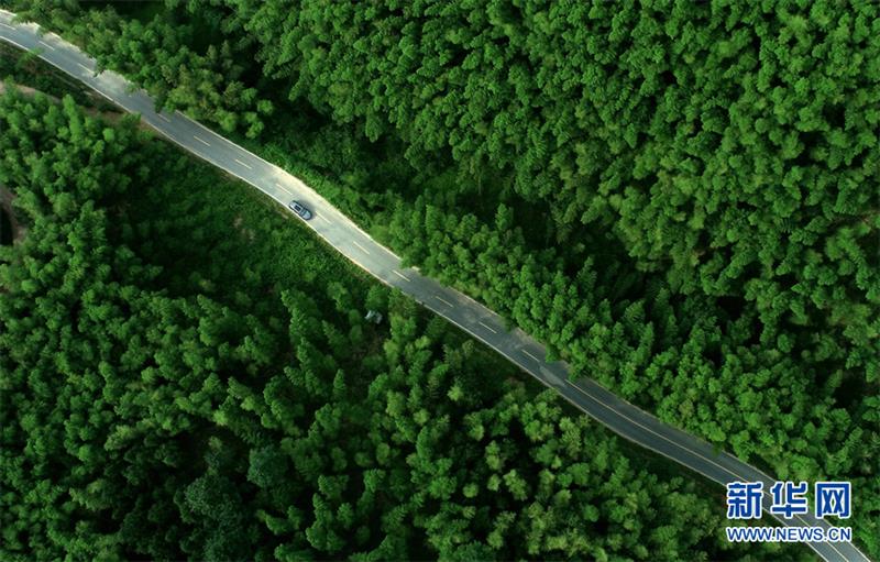 5月31日,車輛行駛在安徽省合肥市廬江縣龍橋鎮(zhèn)凌安村綠意蔥蘢的公路上。
