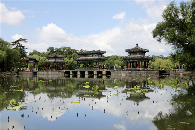 當(dāng)日,連續(xù)降雨過后的河北省承德市天氣晴朗,世界文化遺產(chǎn)承德避暑山莊在藍(lán)天白云映襯下景美如畫。新華社發(fā)(劉環(huán)宇 攝)