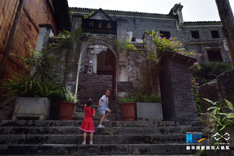 龔灘古鎮(zhèn)老街上的川主廟。古鎮(zhèn)上有許多保存完好且頗具規(guī)模的明清建筑群,訴說著它久遠的歷史。新華網(wǎng)發(fā)(陳碧生 攝)