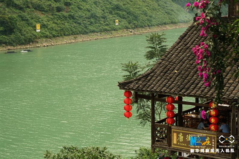 由于水陸交通便利,龔灘自古便是川渝黔湘鄂的客貨中轉站。臨江而建的吊腳樓群,還留存著古鎮(zhèn)曾經(jīng)繁華的印記。新華網(wǎng) 韓夢霖 攝