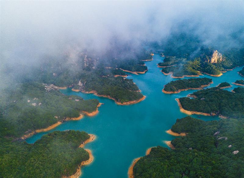 福建漳州烏山山脈,橫跨云霄縣、詔安縣、常山華僑經(jīng)濟(jì)開發(fā)區(qū)等縣區(qū)。位于常山華僑經(jīng)濟(jì)開發(fā)區(qū)境內(nèi)的烏山天池屬于烏山山脈的核心區(qū)。在這海拔700多米的高山上,一池面積約800畝的湖水被群山所環(huán)繞,山巍峨雄偉,水清秀柔美,山水交融,宛若一串綠色翡翠鑲嵌于群山之中,美如畫卷。
