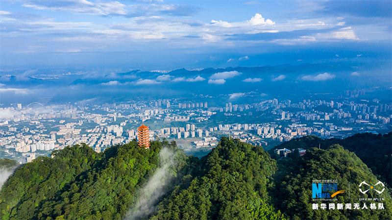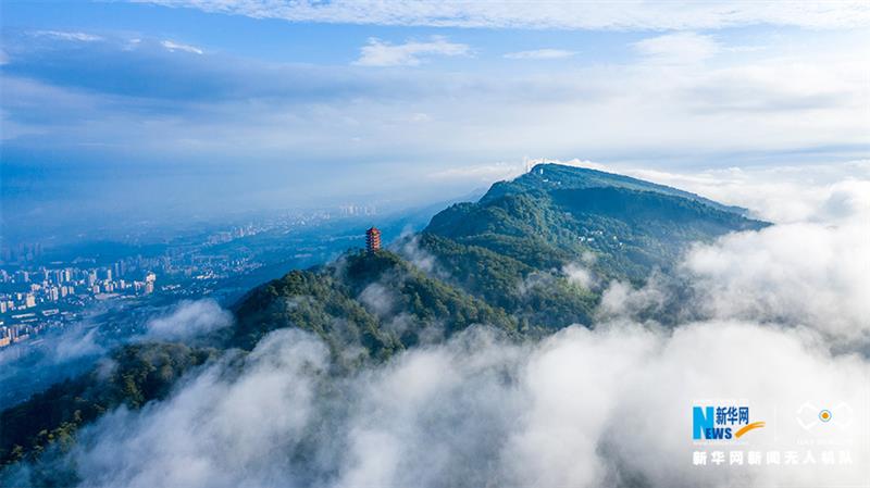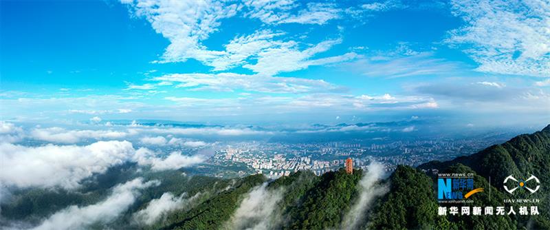 一場雨后,重慶市北碚區(qū)縉云山迎來絕佳景致。藍天白云之下,青山屹立,云霧繚繞,宛如一幅壯闊畫卷。新華網(wǎng)發(fā)(秦廷富 攝)