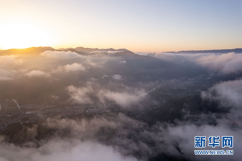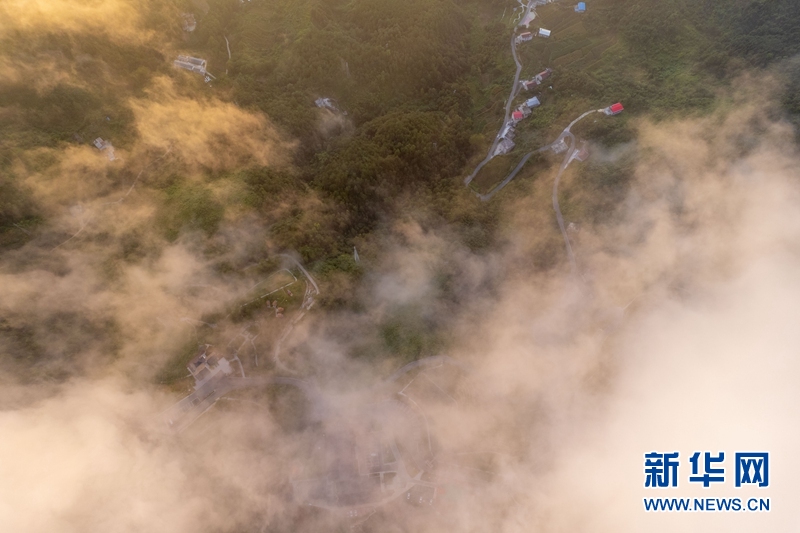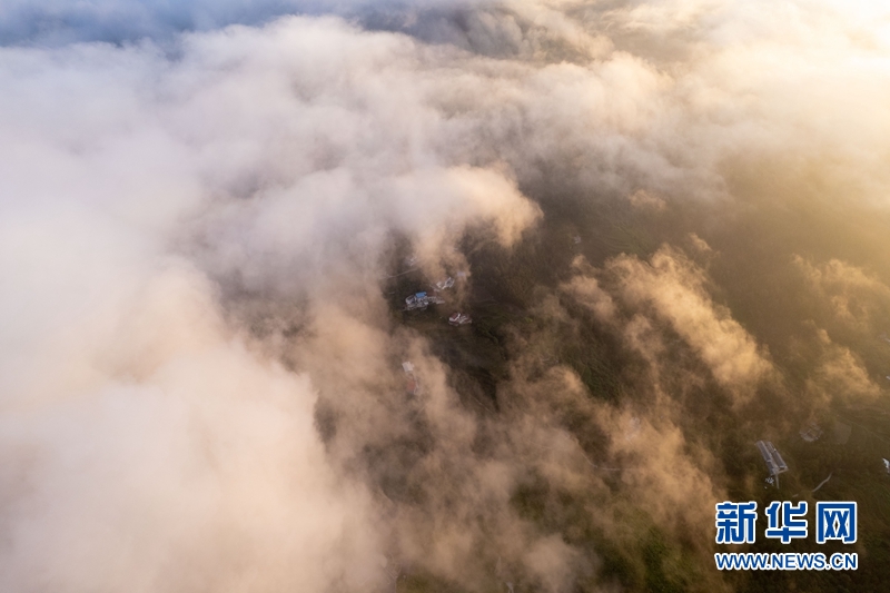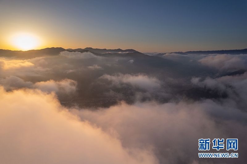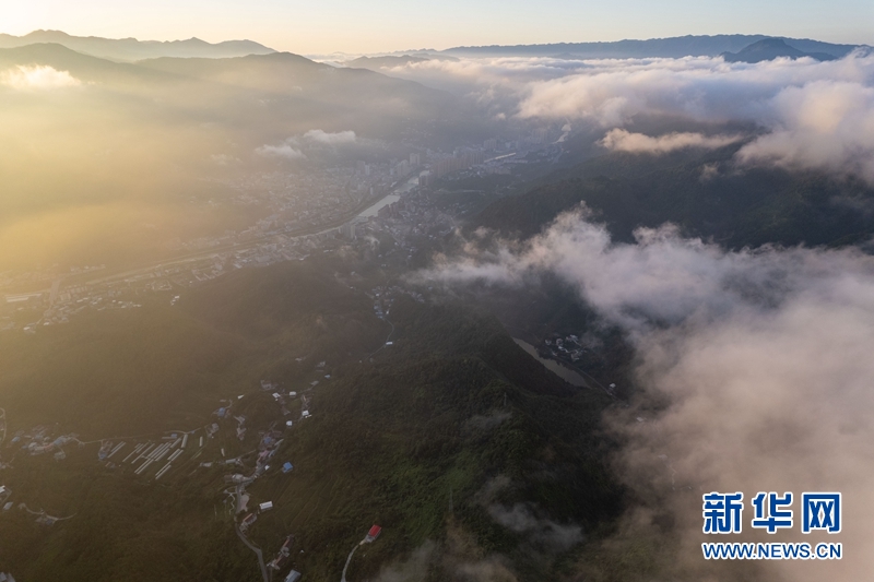航拍湖北省襄陽(yáng)市??悼h云海景觀 新華網(wǎng)發(fā) 陳泉霖?cái)z