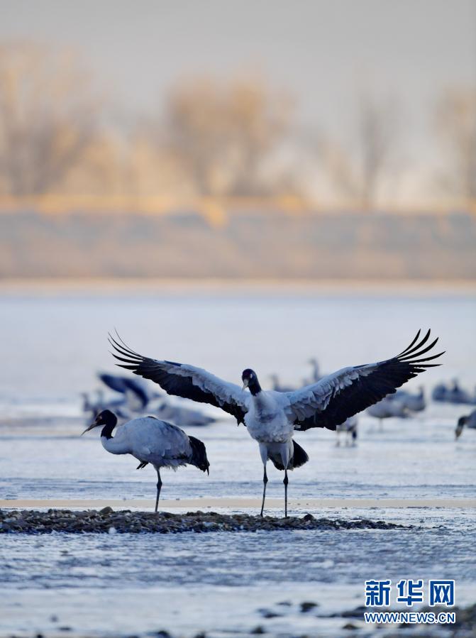 冬日,大批黑頸鶴在西藏拉薩市林周縣境內(nèi)棲息、覓食。 林周縣黑頸鶴自然保護區(qū)建立于1993年,2003年被設立為國家級自然保護區(qū),是雅魯藏布江中游自然保護區(qū)的核心部分,在每年的11月底至12月初,這里便會迎來成群的黑頸鶴過冬。
