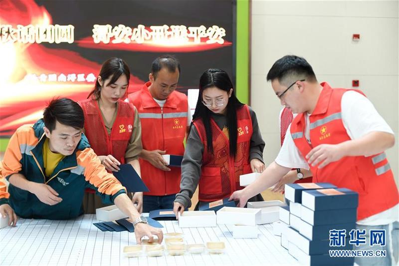 9月27日,志愿者在分裝愛心月餅。在中秋節(jié)即將到來之際,浙江湖州南潯團(tuán)區(qū)委組織志愿者開展“情滿中秋話團(tuán)圓 潯安小哥送平安”主題活動,志愿者陸續(xù)將親手制作的愛心月餅送到福利院老人、環(huán)衛(wèi)工人等群體手中,致以節(jié)日的問候。 新華社記者 黃宗治 攝