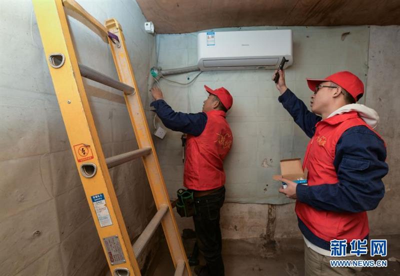 11月23日,志愿者在余國春家中為他免費改造用電線路,安裝新開關。新華社記者 徐昱 攝