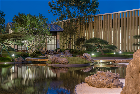 特別的是,作為城市里的公共藝術(shù)空間,這間24小時(shí)書房面向公眾免費(fèi)開放。大部分圖書都可以免費(fèi)借閱,不收押金,讀者憑信譽(yù)實(shí)現(xiàn)書籍的借閱與歸還。在書房里穿過一排排書柜,來到玻璃幕墻前,雅致的書齋庭院和靜寂的枯山水庭園映入眼簾。室內(nèi)燈火可親、書頁(yè)生香,室外的青松和白砂予人平靜,看久了,仿佛自己也化成光,墜入周圍的光之海。若是夜晚前來讀書,書房的工作人員會(huì)送上一碗免費(fèi)的暖胃湯羹。