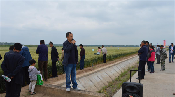 在下午田間觀摩會上,江蘇保豐集團公司總經(jīng)理丁養(yǎng)銳農(nóng)藝師分享了自己小麥經(jīng)營管理心得,從品種選擇、種子處理、田間雜草病害防治等進行了一一分享,種植大戶受益匪淺。