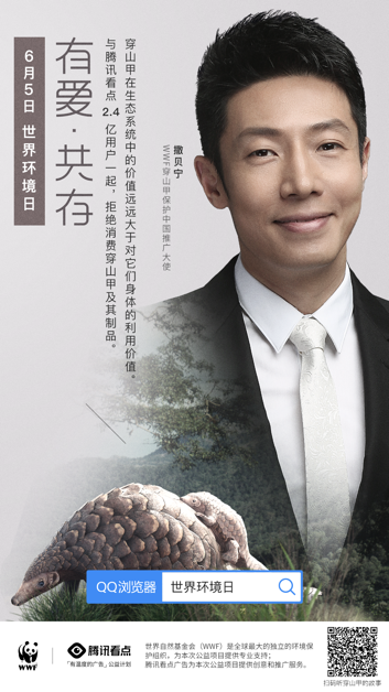 為拯救穿山甲,騰訊看點(diǎn)聯(lián)合WWF,從人與動物的共同天性出發(fā),喚起人類的共情,用富有創(chuàng)意的海報(bào)、視頻和互動游戲的形式,呼吁大眾重視穿山甲公益保護(hù)理念,同時呼吁將穿山甲由國家二級保護(hù)野生動物提升至國家一級。