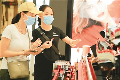 海南省??谑腥赵聫V場免稅店嚴抓疫情防控,并推出優(yōu)惠活動吸引顧客前來購物,讓來瓊旅客及本島居民享受離島免稅政策帶來的利好。圖為消費者在店內(nèi)選購商品。張 茂攝(人民視覺)
