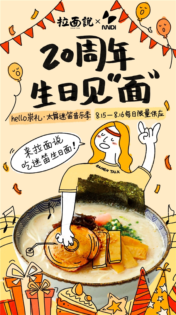 夏天的遺憾就讓初秋來(lái)化解吧!被美食耽誤的制面藝術(shù)家拉面說空降狂歡現(xiàn)場(chǎng),來(lái)拉面說吃迷笛20周年生日面,2020崇禮·太舞迷笛音樂季,我們現(xiàn)場(chǎng)見“面”!