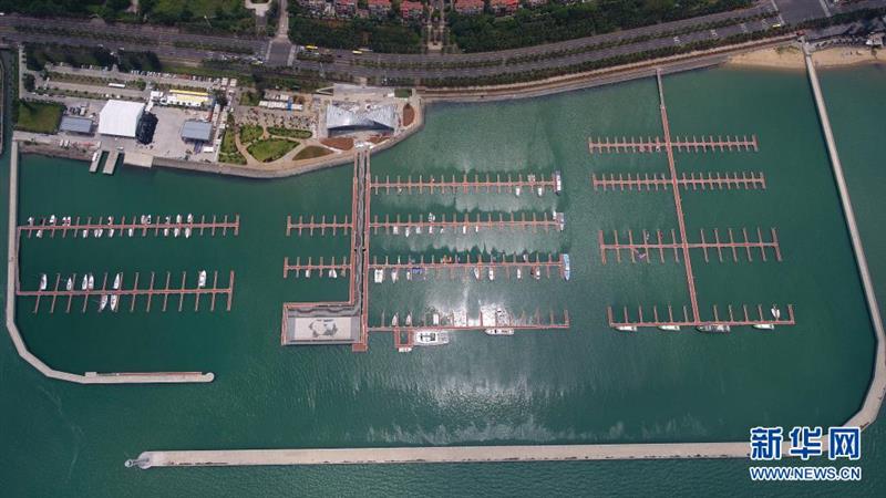 這是消博會(huì)游艇展的舉辦地——??趪曳毓泊a頭(無人機(jī)照片,4月30日攝)。新華社記者 楊冠宇 攝