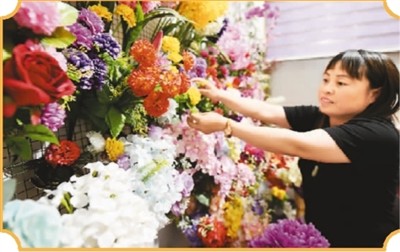 河北省邯鄲市廣平縣近年來扶持發(fā)展以絹花系列產(chǎn)品為主的工藝品制作產(chǎn)業(yè),與規(guī)模企業(yè)對(duì)接,走規(guī)模化、集群化發(fā)展之路,帶動(dòng)當(dāng)?shù)剞r(nóng)村婦女家門口就業(yè)增收。圖為日前當(dāng)?shù)匾患医伝ㄖ破窂S的員工在整理絹花工藝品。程學(xué)虎攝(人民視覺)