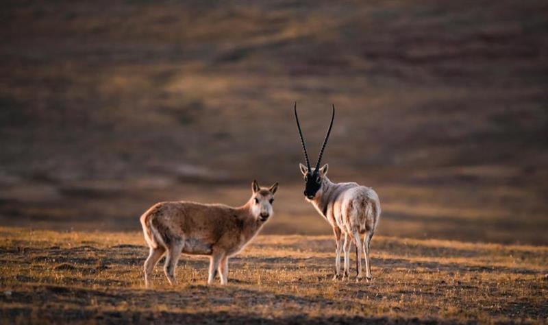 △2021年1月13日,青??煽晌骼镒匀槐Wo(hù)區(qū)的藏羚羊。(圖/視覺(jué)中國(guó))
