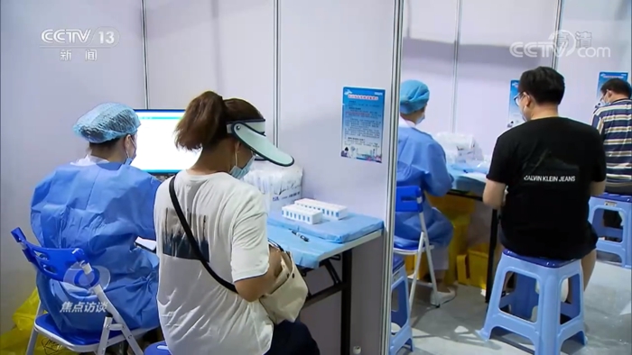 截止到5月29日,廣東又新增13例本土無癥狀感染者,隨著這輪本土疫情的發(fā)生,廣東老百姓接種疫苗的積極性也隨之高漲。當?shù)卦诩訌娨咔榉揽氐耐瑫r,也在全力加速疫苗接種。深圳灣體育中心是深圳最大的疫苗接種點之一,近幾天,前來接種新冠疫苗的市民大幅度增加,原本在工作日并不需要排隊的接種現(xiàn)場,如今排起了長隊。為應(yīng)對增加的接種人群,疫苗接種點增派了醫(yī)護人員及志愿者。