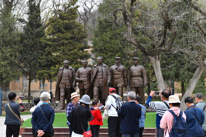 2021年3月30日,參觀者在陜西延安棗園革命舊址參觀。新華社記者 張博文 攝