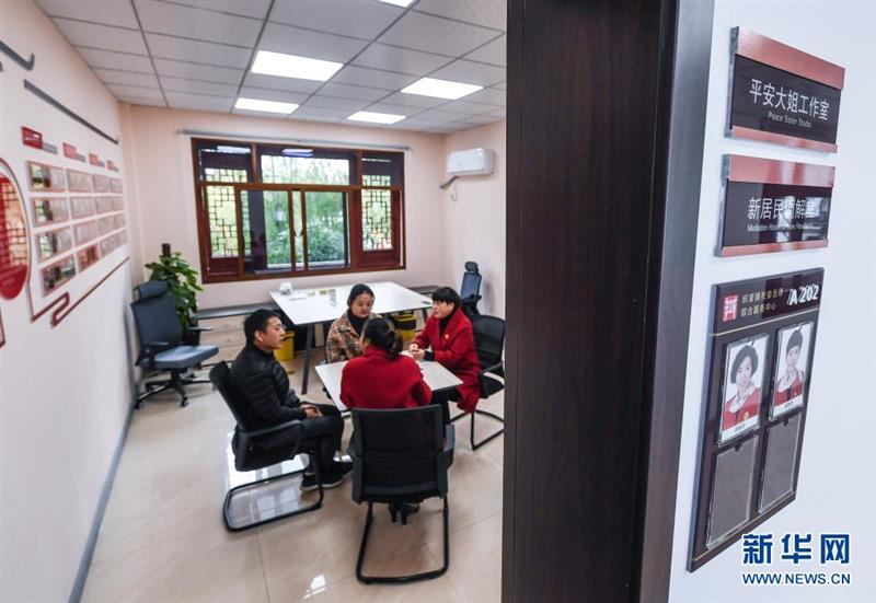 在浙江省湖州市織里鎮(zhèn)社會(huì)治理綜合服務(wù)中心的調(diào)解室,“平安大姐”工作室的志愿者對(duì)一起加工廠因加工童裝質(zhì)量差而導(dǎo)致業(yè)主虧損的糾紛進(jìn)行調(diào)解(2019年11月29日攝)。新華社記者 徐昱 攝