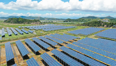 7月15日,浙江省玉環(huán)市漩門灣三期海涂晶科光伏發(fā)電站與藍(lán)天白云相互映襯,構(gòu)成一幅綠色能源新畫卷。 |