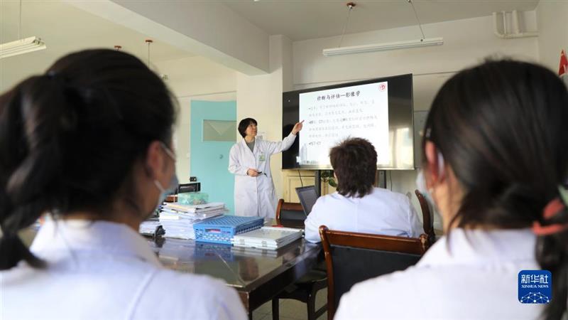 天津市中心婦產(chǎn)科醫(yī)院婦產(chǎn)專業(yè)副主任醫(yī)師饒陽給甘南州人民醫(yī)院婦產(chǎn)科的醫(yī)生進(jìn)行培訓(xùn)(2021年1月15日攝)。新華社記者 張睿 攝