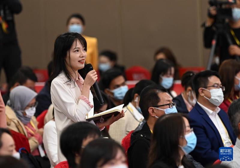 這是記者在分會場提問。新華社記者 金良快 攝