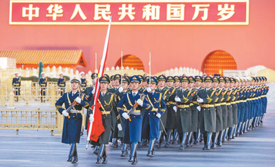 1月1日清晨,北京天安門廣場(chǎng)舉行隆重的升國(guó)旗儀式。